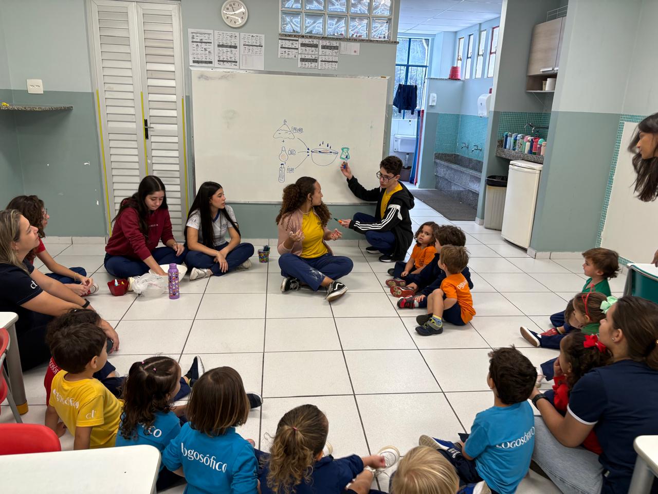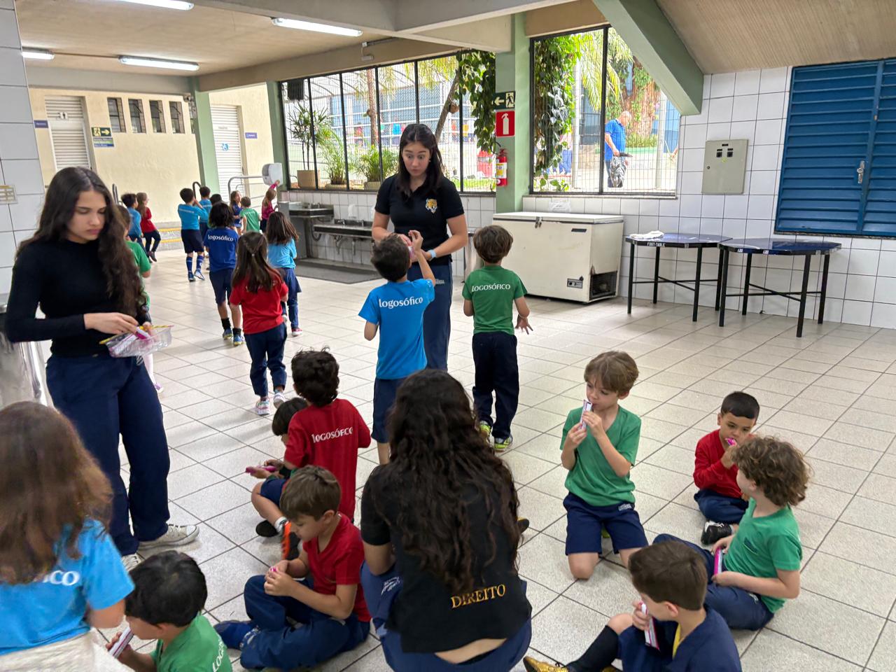 Entre expectativas, entusiasmo e um toque de nervosismo, os adolescentes dedicaram uma tarde a conversar, brincar e compartilhar momentos de alegria com as turmas do Infantil.