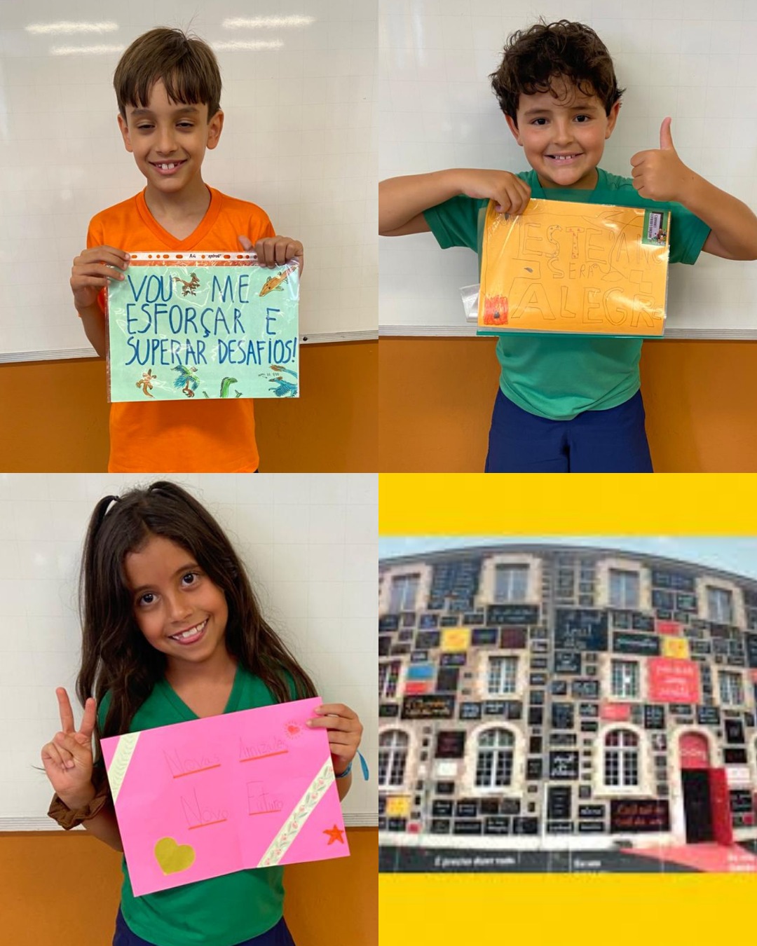Os alunos do 3º Ano participaram de uma atividade criativa inspirada na obra “O Muro das Palavras”, do artista francês Benjamin Vautier, intervenção realizada na fachada da Escola de Belas-Artes de Blois, na França.