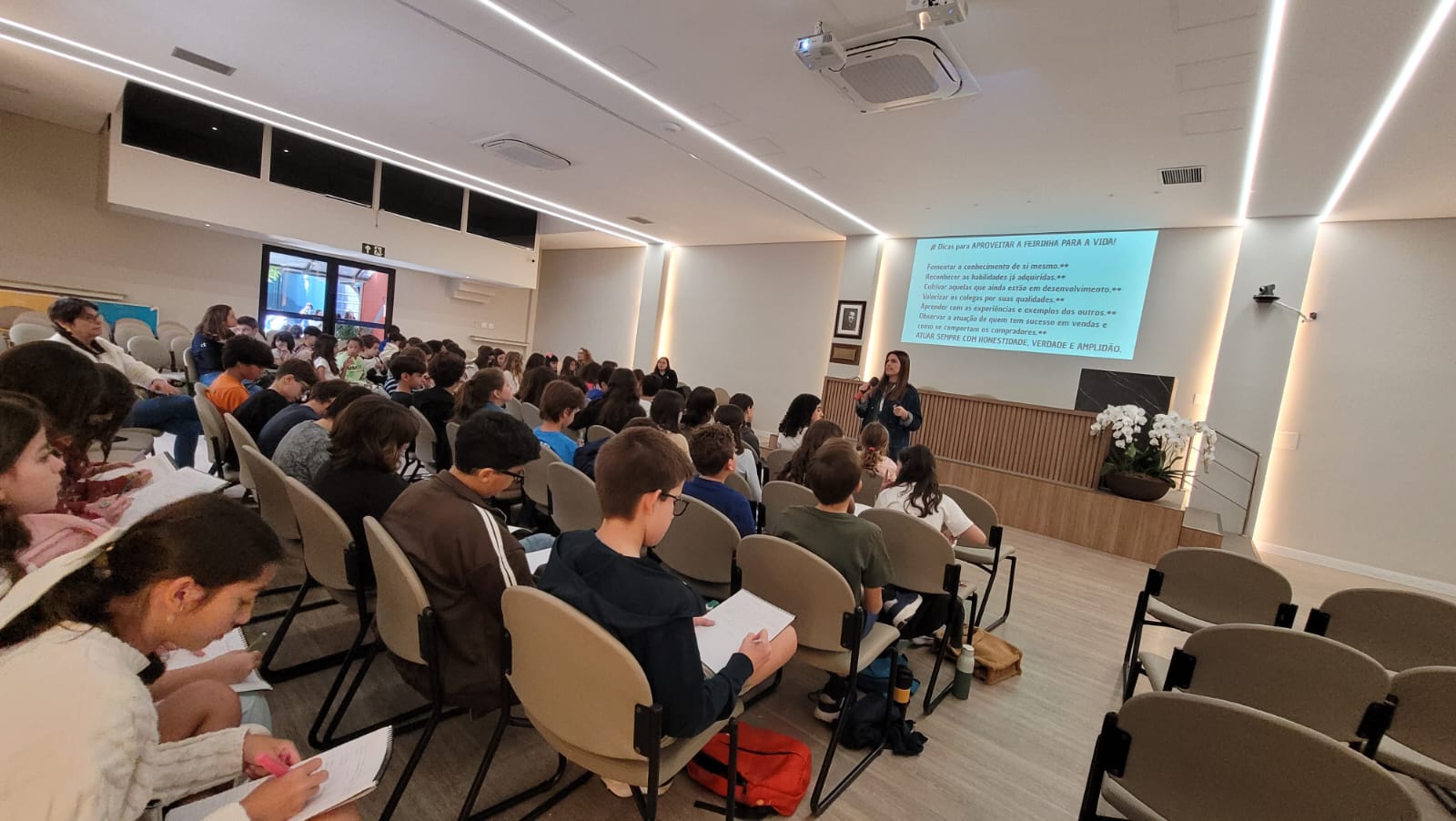 O encontro contou com a participação de convidados que abordaram temas como empreendedorismo, marketing e aspectos tributários, além de dinâmicas de trabalho em equipe conduzidas pelos professores de Educação Física. Foi uma manhã repleta de entusiasmo, aprendizado e colaboração!