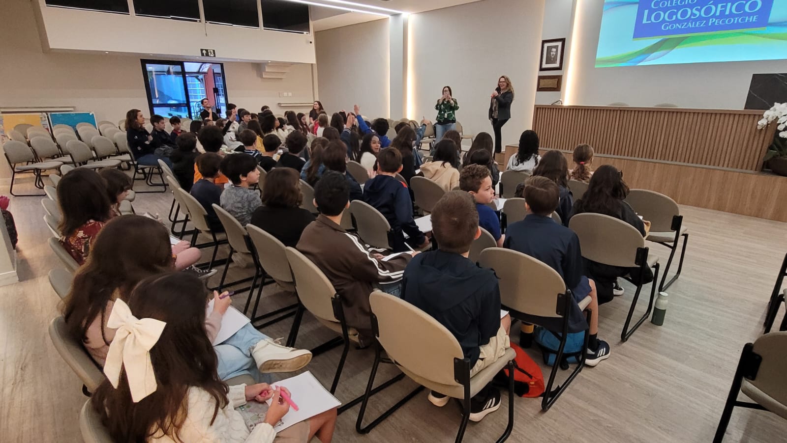 Os alunos do 5º Ano A e B, junto às professoras Rita Xavier, Daniela Libânio, Júlia Lisboa e Natália Assis, participaram com muita alegria do AtivaMente – Workshop sobre Empreendedorismo, uma atividade especial que marcou o lançamento do Projeto Feirinha.