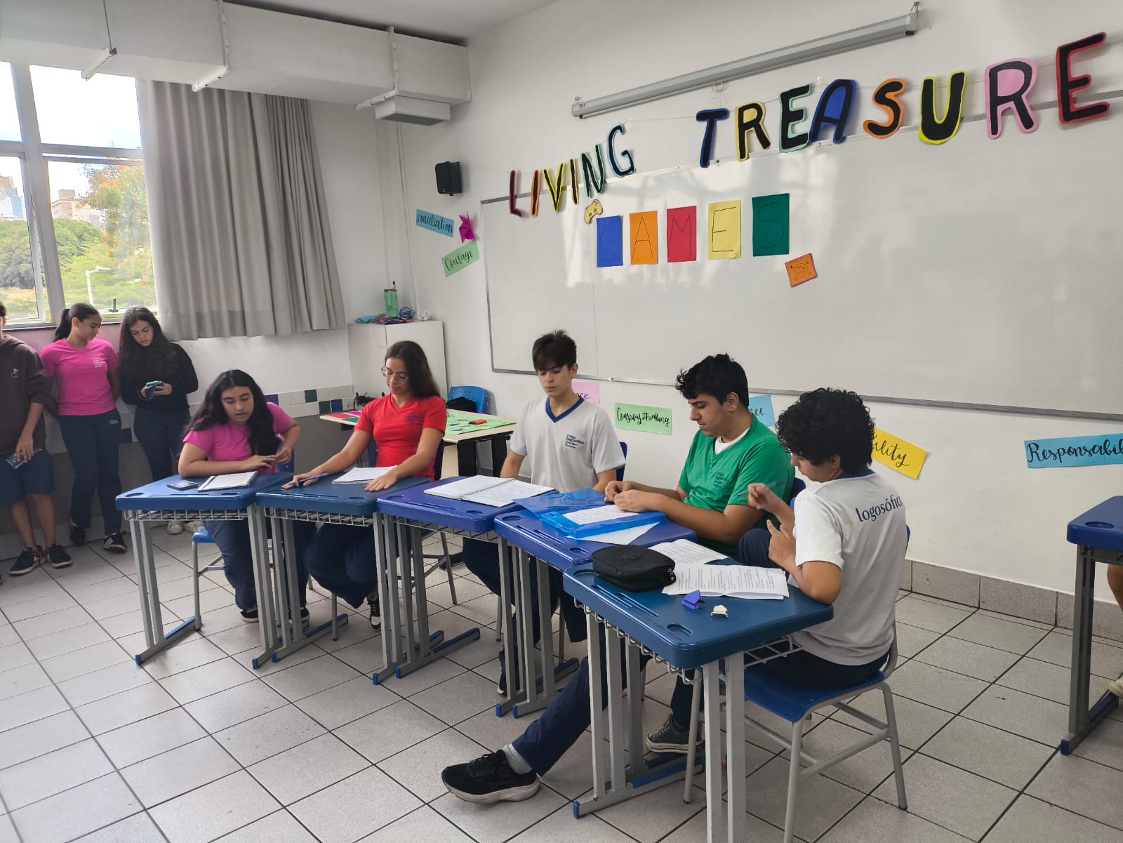 Nas aulas de Inglês com a teacher Camila, os alunos do 9º Ano embarcaram no projeto Coexistence and the Expansion of Inner Treasures, refletindo sobre como a convivência pode ser um caminho de crescimento interno.