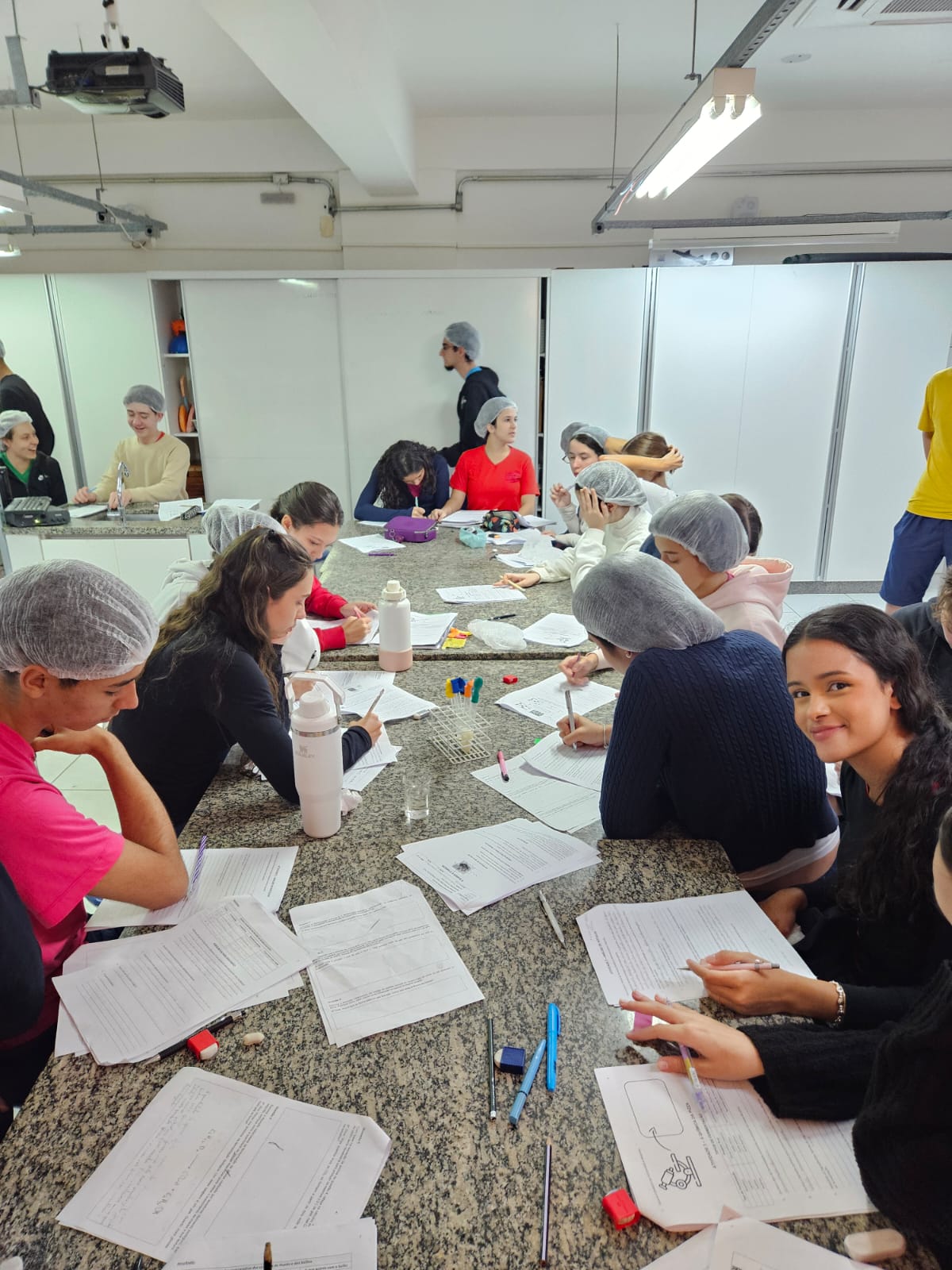 Entre conversas, experimentos e muita curiosidade, os alunos exploraram as reações de fermentação, o reino Fungi e os conceitos de estequiometria, compreendendo os fenômenos que tornam possível algo tão simples — e delicioso — quanto uma pizza.
