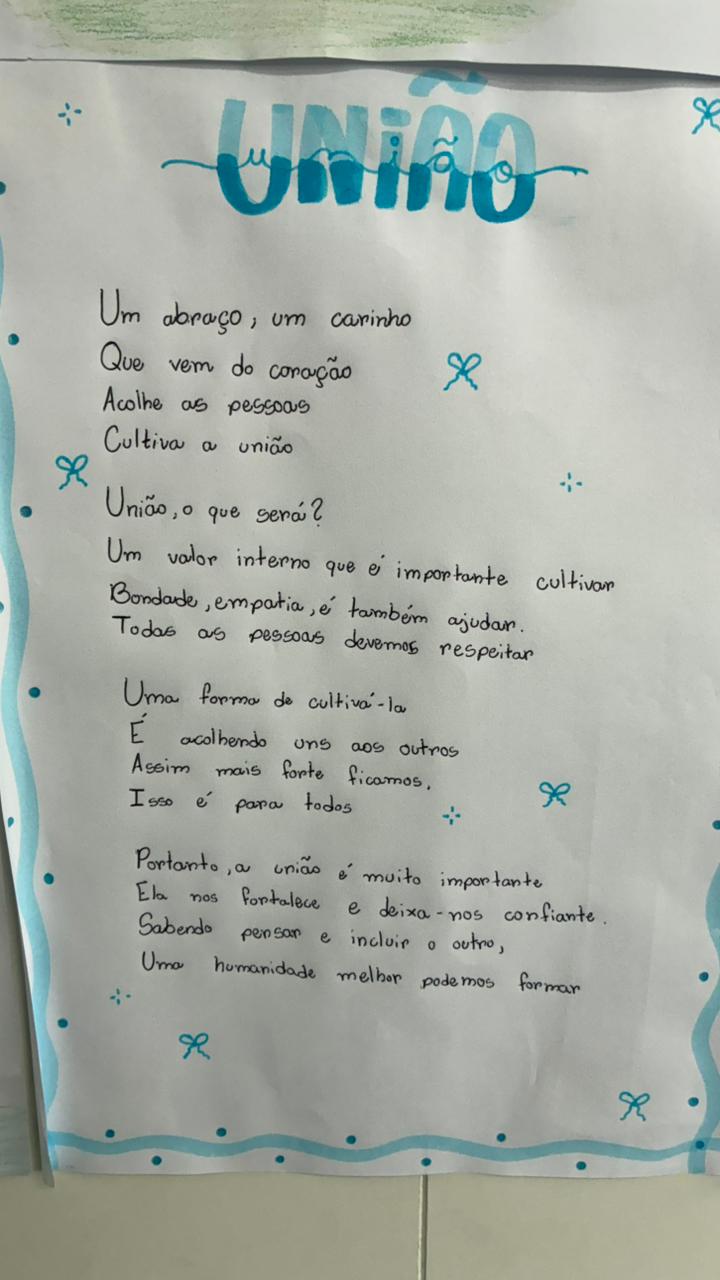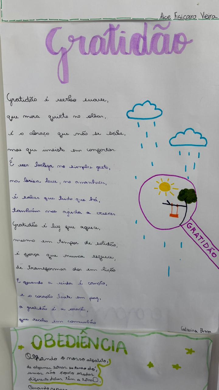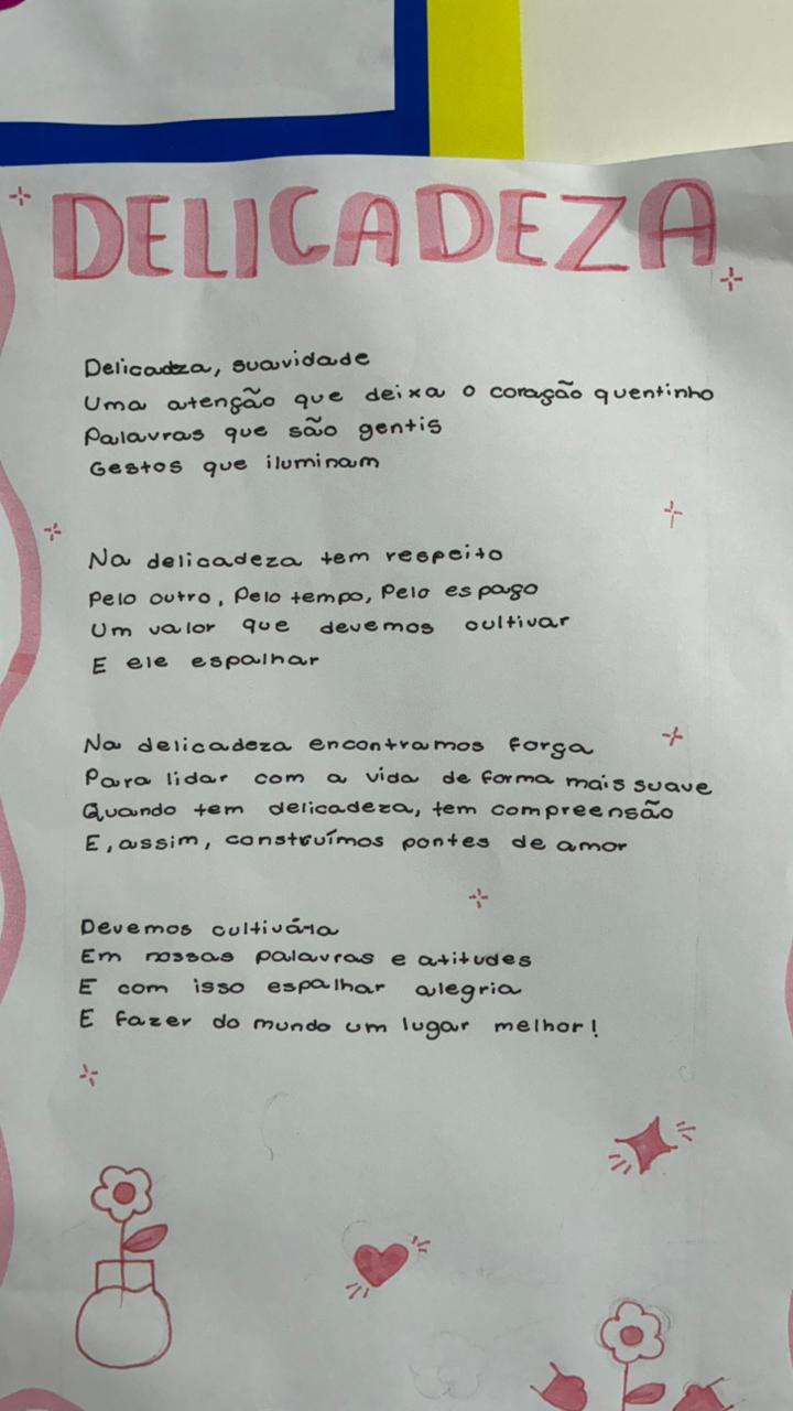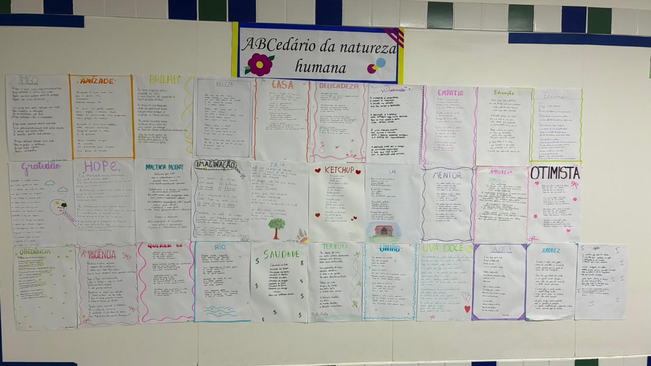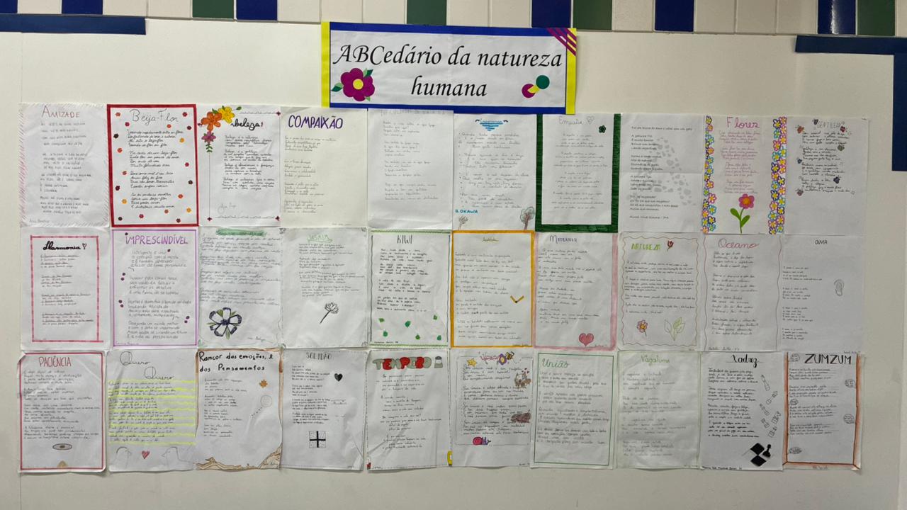A partir da leitura da obra, que celebra a delicadeza e a empatia nas relações humanas, os alunos criaram seus próprios poemas, formando um abecedário poético que expressa diferentes facetas da Natureza Humana.