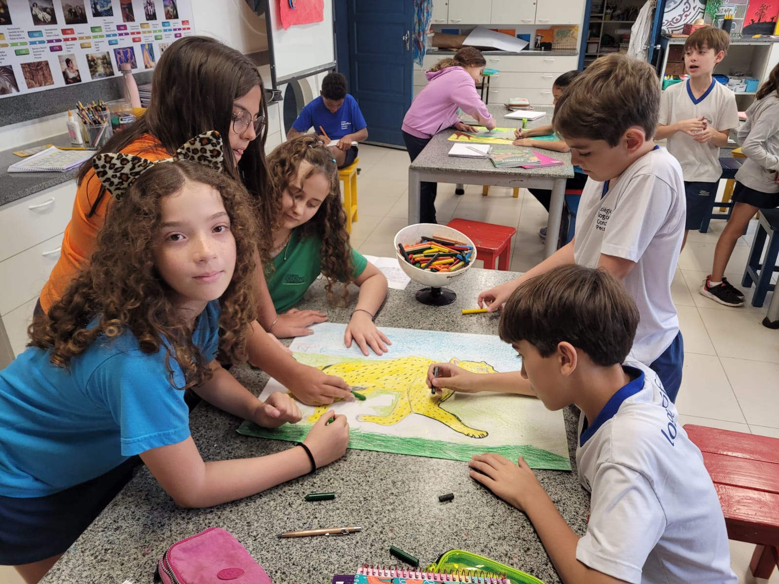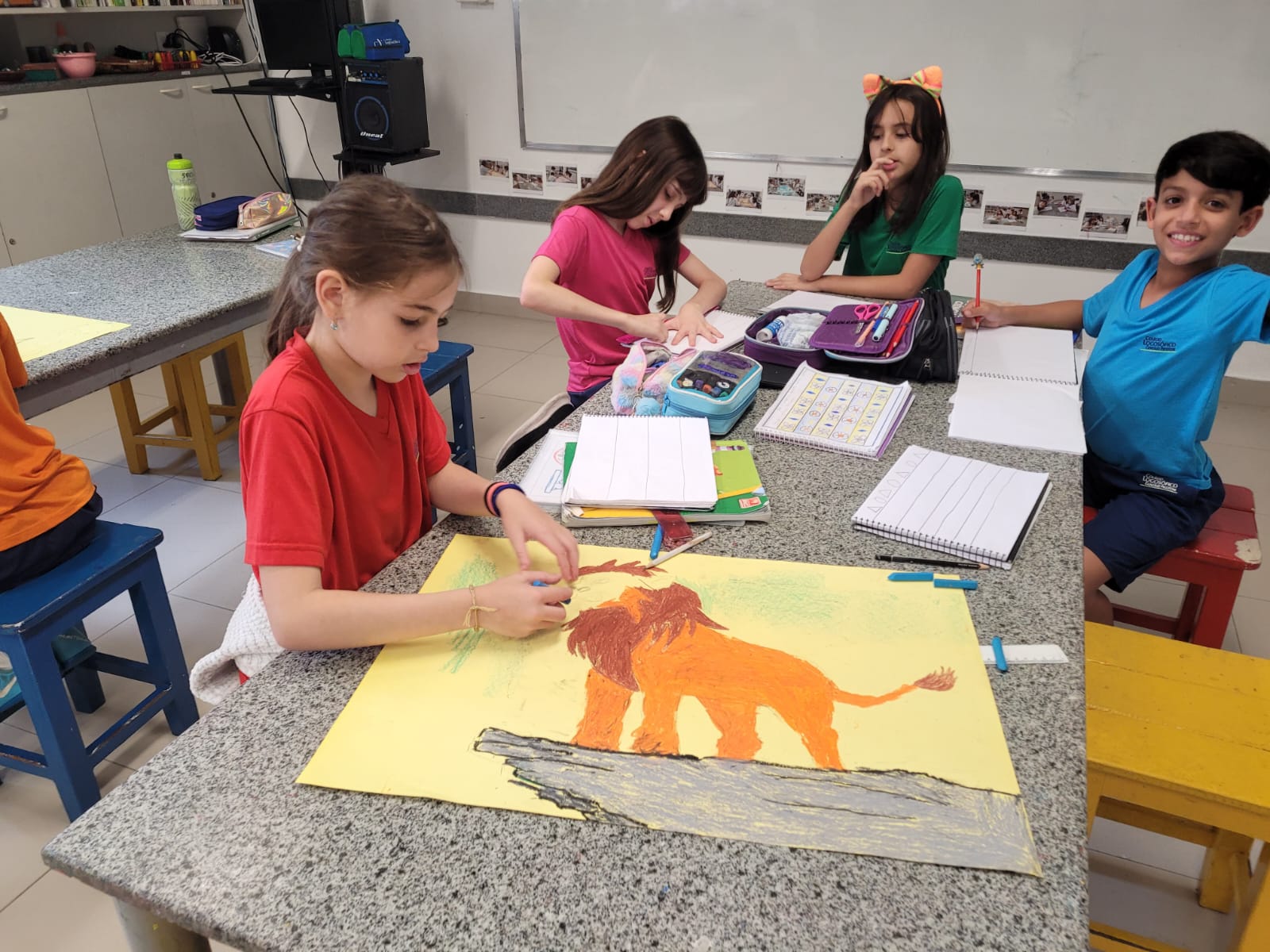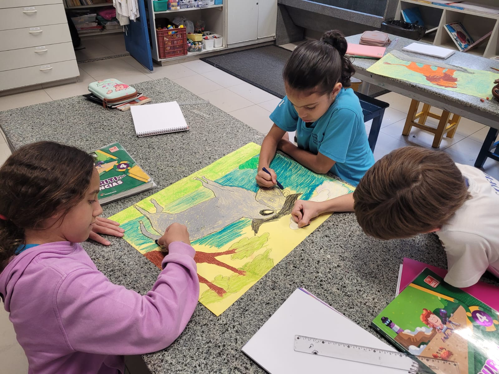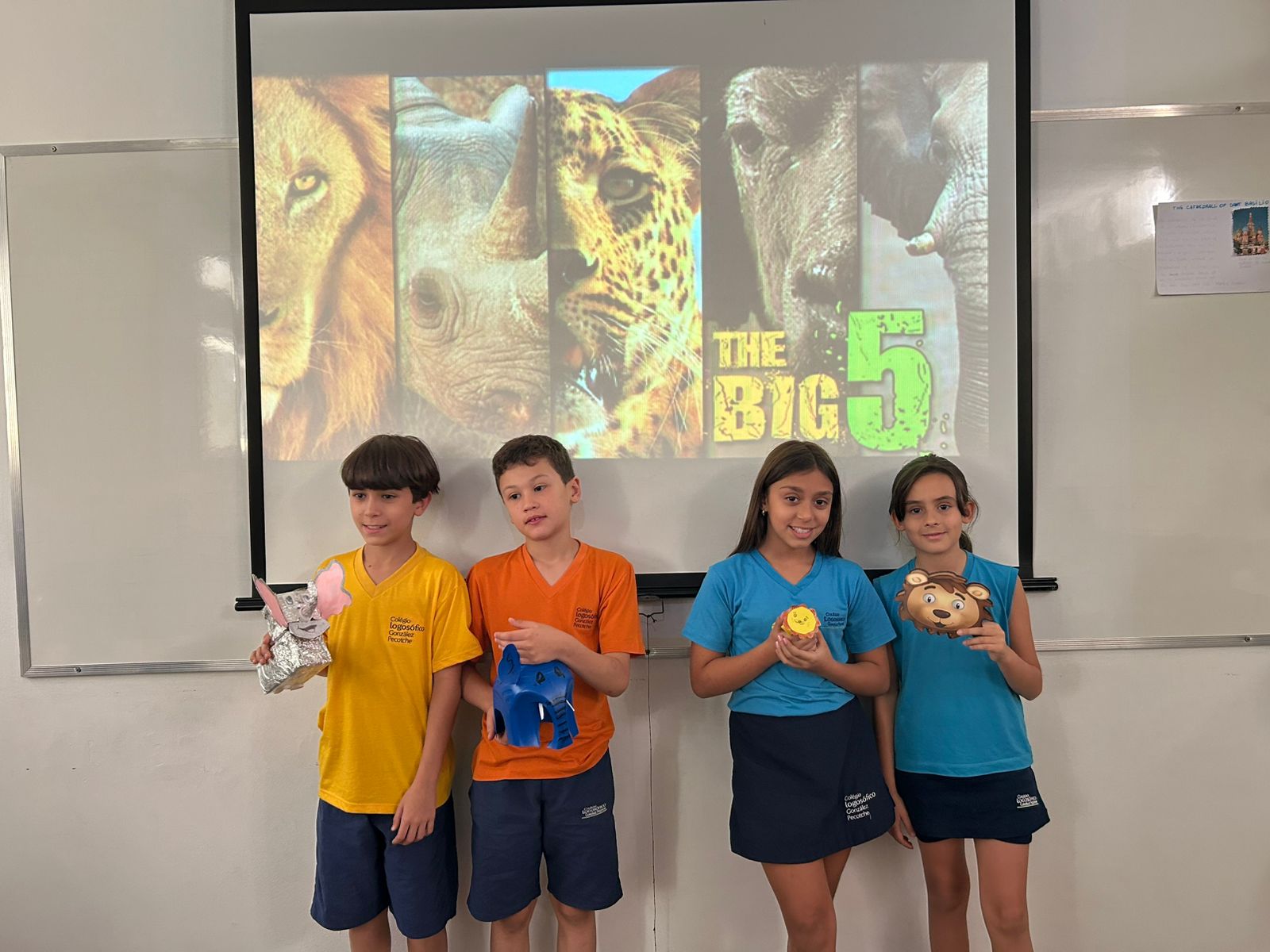 Nas aulas de Inglês, em parceria com Artes, as professoras Alice Fajardo e Thaís Costa conduziram o estudo “THE BIG FIVE” — os cinco grandes animais da África, conhecidos por serem os mais difíceis e perigosos de se caçar!