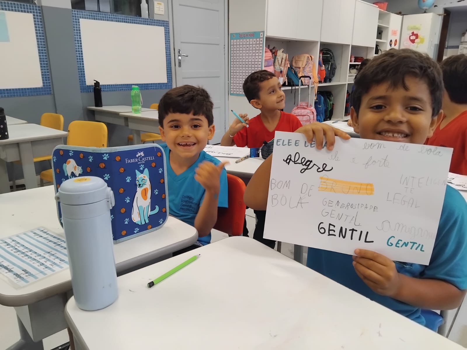 Os alunos do 1º Ano B vivenciaram um momento especial de reflexão sobre o valor das palavras e a alegria de viver. Em conversa conduzida em sala, as crianças refletiram sobre a importância da amizade e de saber expressar sentimentos aos colegas, reconhecendo como palavras de carinho podem fortalecer vínculos.