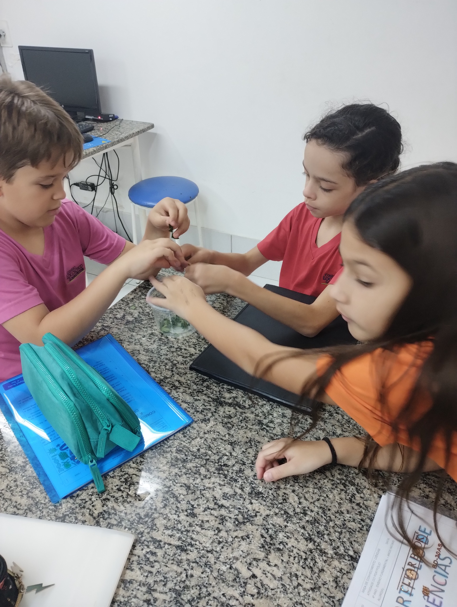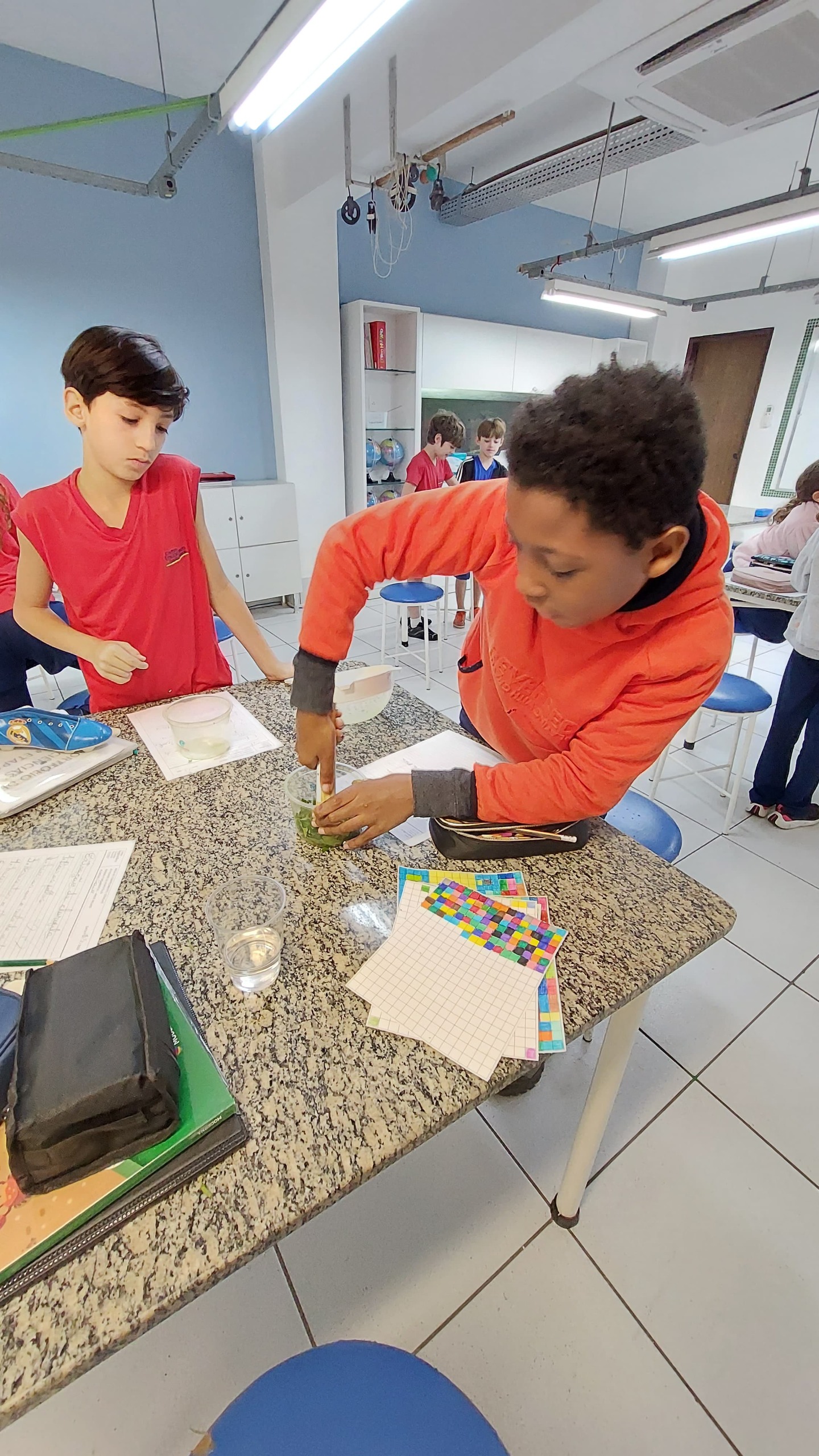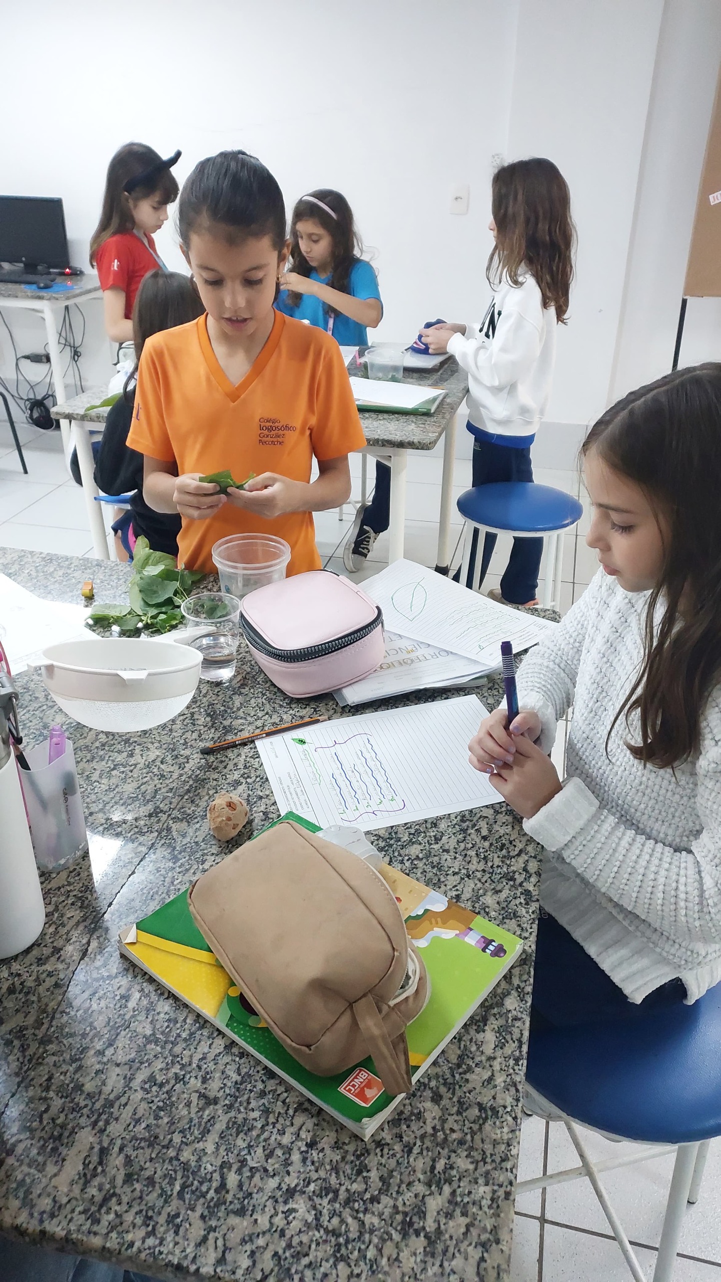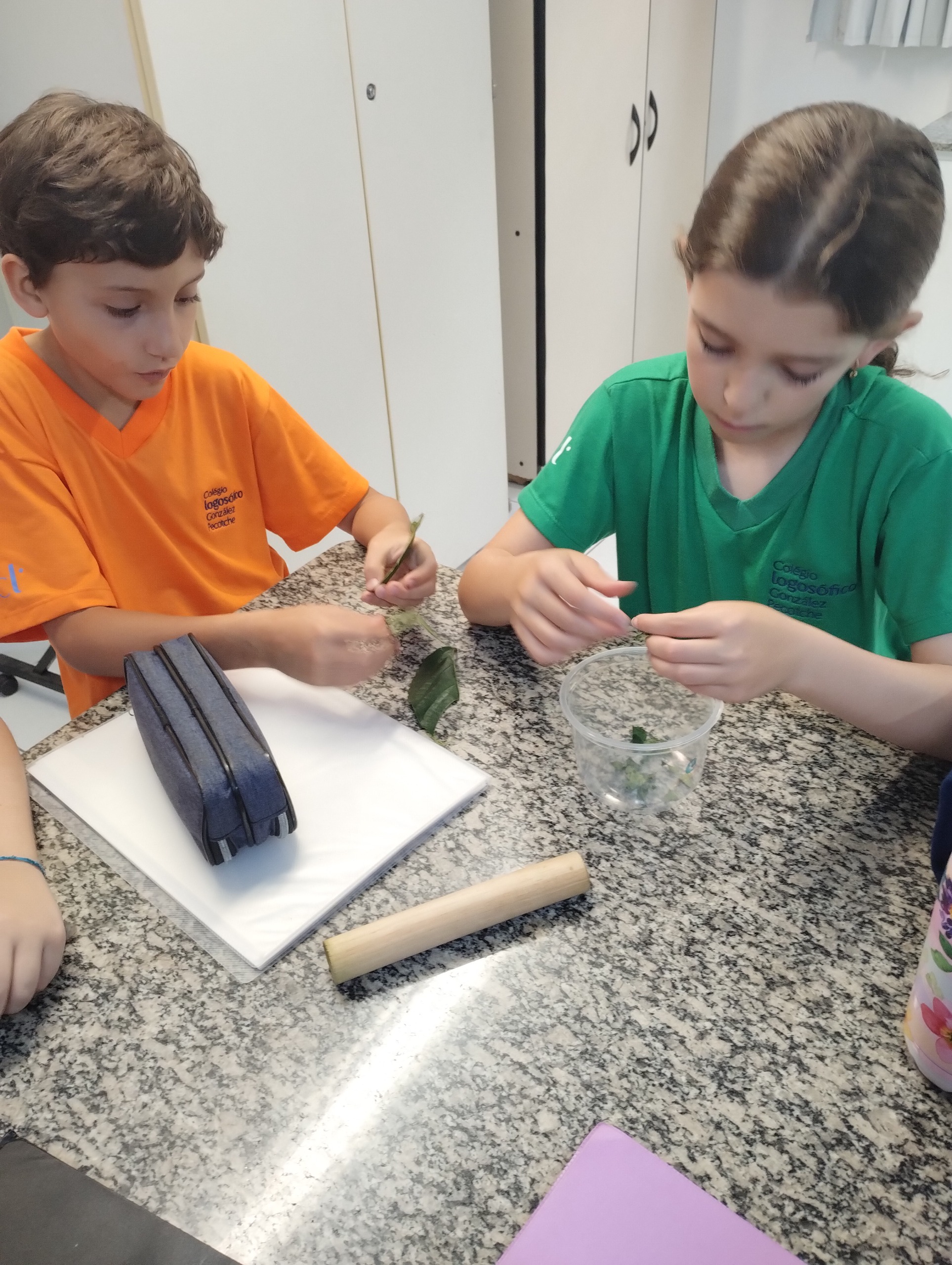 Durante as aulas de Ciências, os alunos do 4º ano realizaram a extração de clorofila das folhas – e o resultado foi surpreendente!