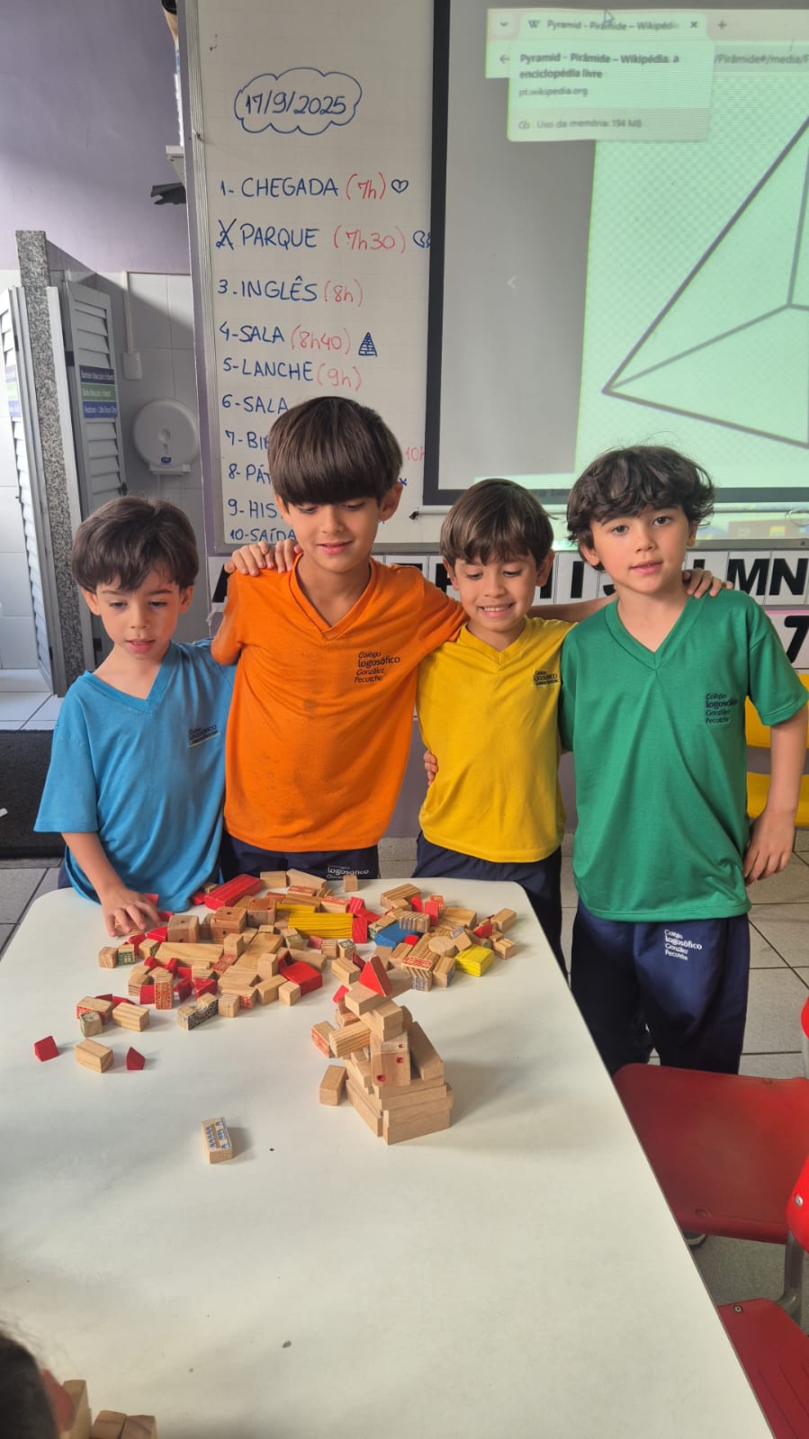 Mais do que erguer pirâmides, a atividade ajudou a fortalecer valores importantes, como cooperação, respeito e trabalho em equipe, tornando o aprendizado ainda mais significativo e divertido!
