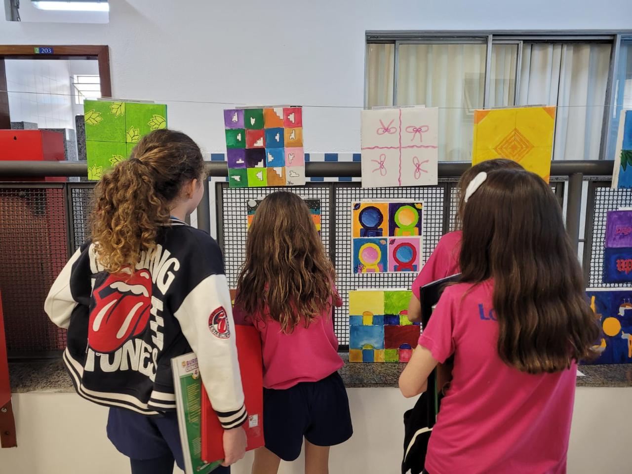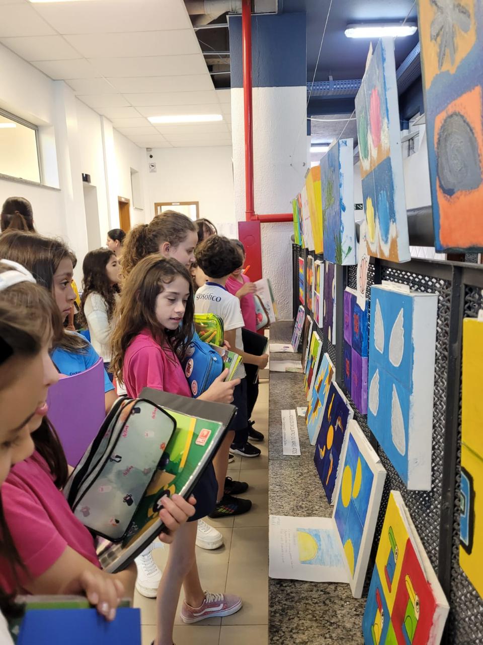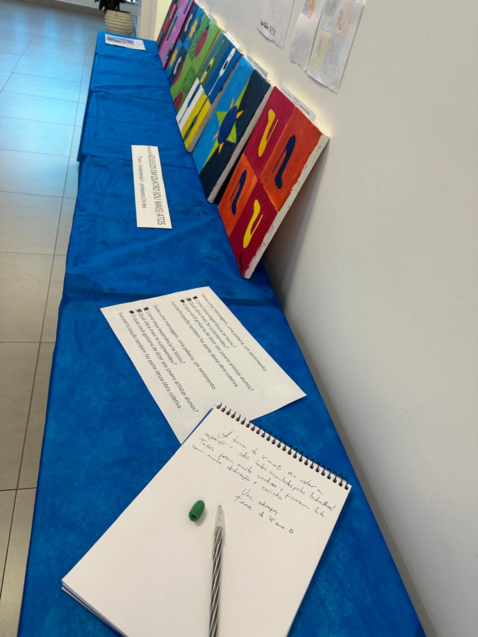 As obras, cheias de cor e expressão, foram produzidas pelos estudantes do 7º Ano B nas aulas de Artes Visuais. Durante a visita, as crianças não apenas apreciaram os trabalhos, como também deixaram mensagens carinhosas para os autores das telas.