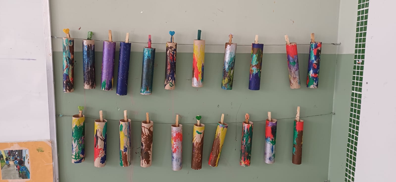 Para finalizar, uma pintura com bolhas de sabão trouxe cor, movimento e alegria a essa descoberta sensorial e afetiva!