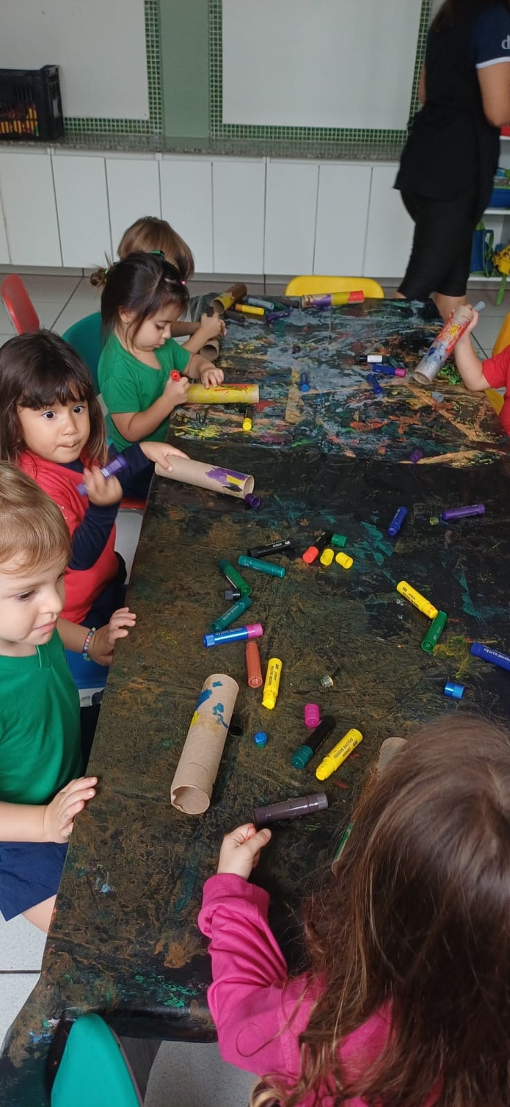 A leitura do livro “Eu posso ver” inspirou uma conversa sobre a importância de vermos o que há de melhor nos amigos, valorizando as qualidades de cada um. Outro momento marcante foi a cortina de monóculos, com diferentes cores e texturas que despertaram a curiosidade e o encantamento.