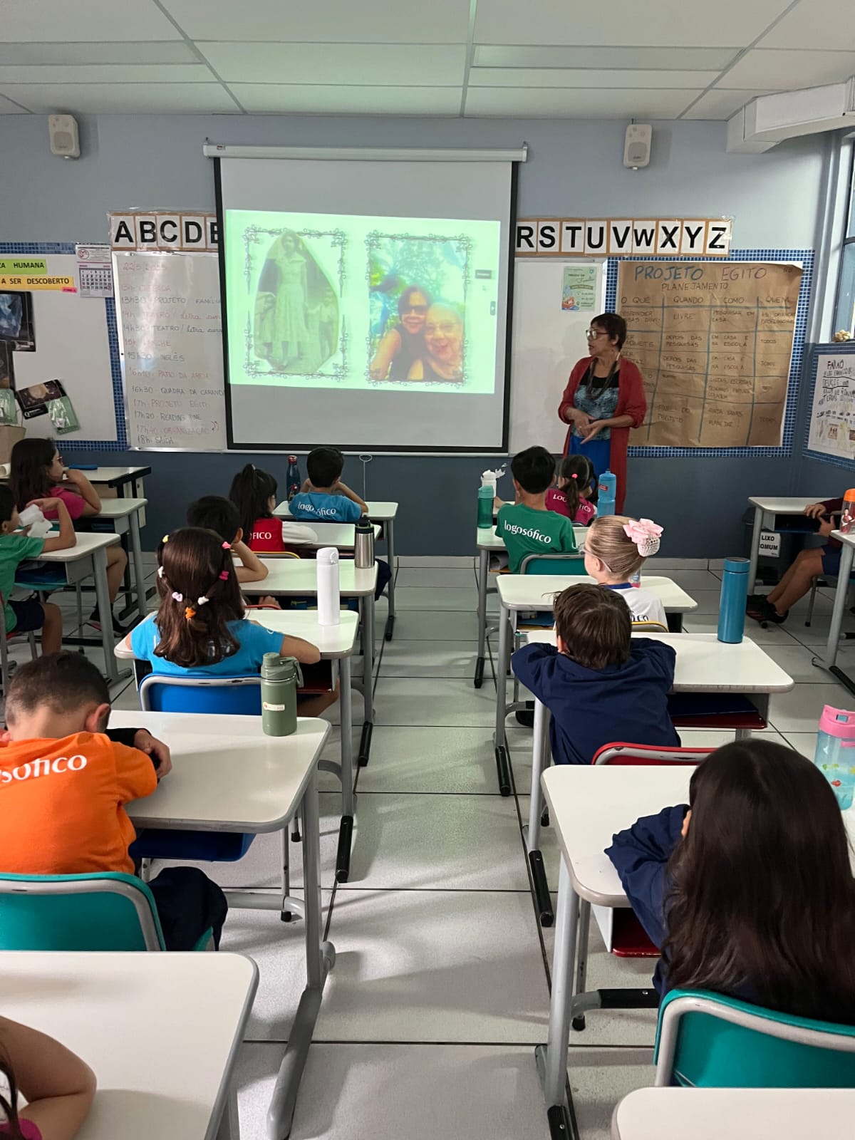Como parte do Projeto da Família, o 1º Ano B viveu um momento especial e cheio de significado. A professora Ana Gabriela convidou sua mãe, Dona Regina, para conversar com a turma sobre um tema profundo: a gratidão.