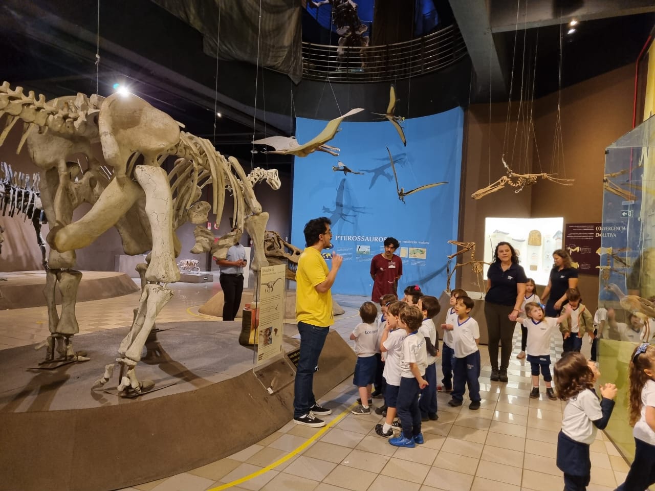 A expectativa era grande e a tarde foi repleta de descobertas! As crianças puderam observar de perto fósseis e esqueletos de dinossauros, confirmando muitas das pesquisas que já haviam realizado. Além disso, compreenderam ainda mais a importância do trabalho de paleontólogos e historiadores para que possamos conhecer e preservar a história da vida na Terra.