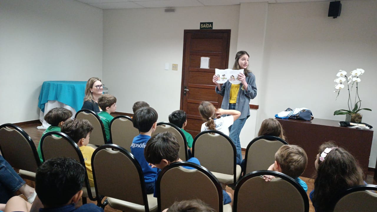 Os alunos do 1º Ano A viveram momentos muito especiais com a visita da autora do livro “A grande descoberta”, Graziela Bridi Faccio.