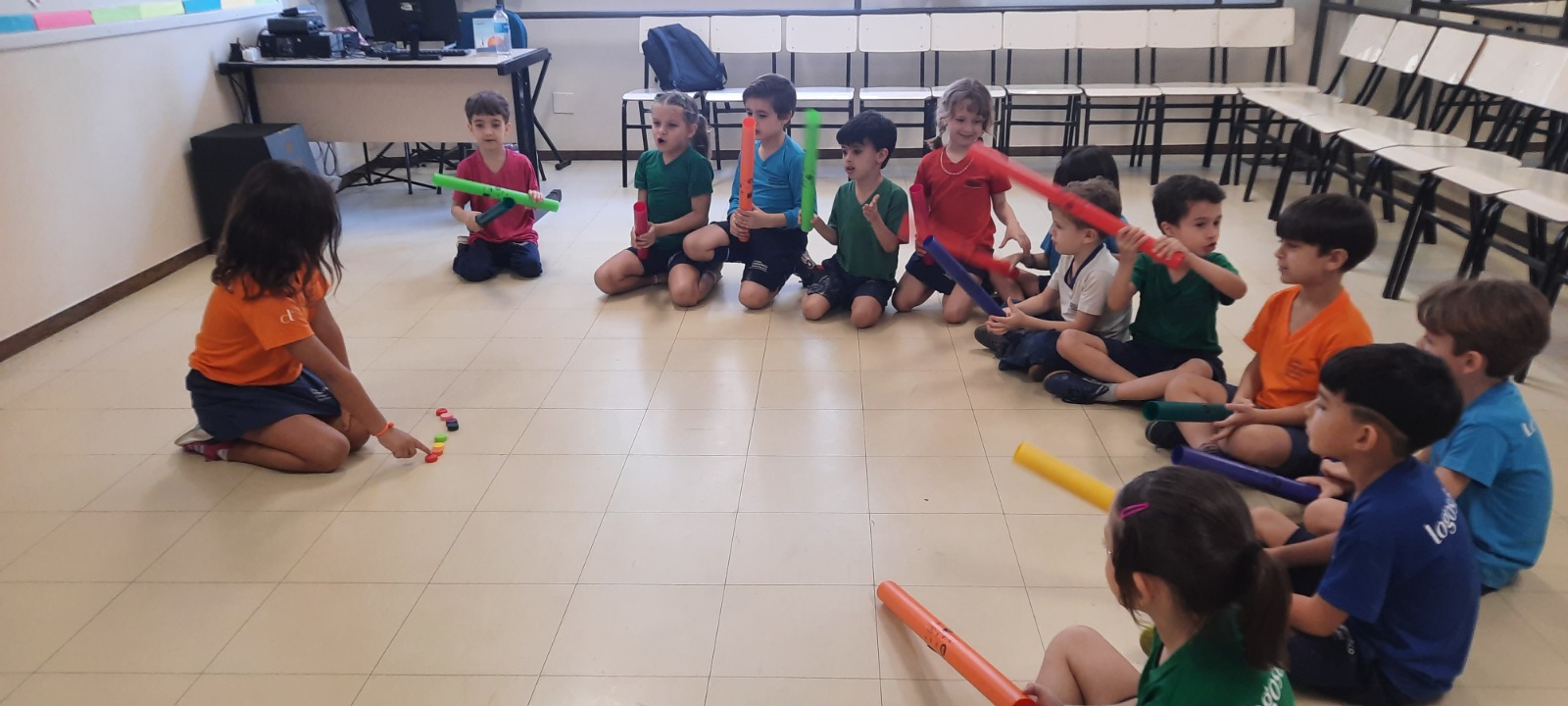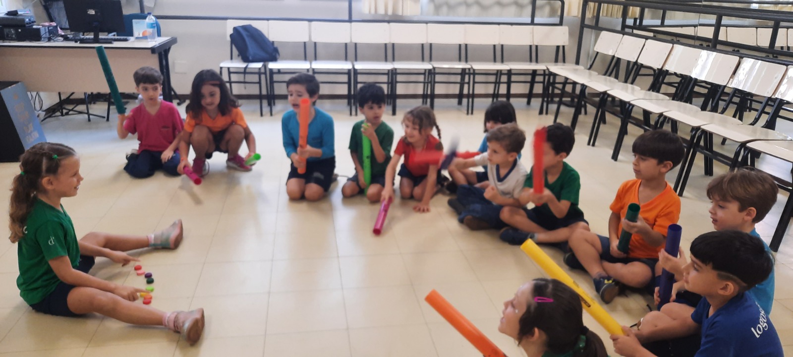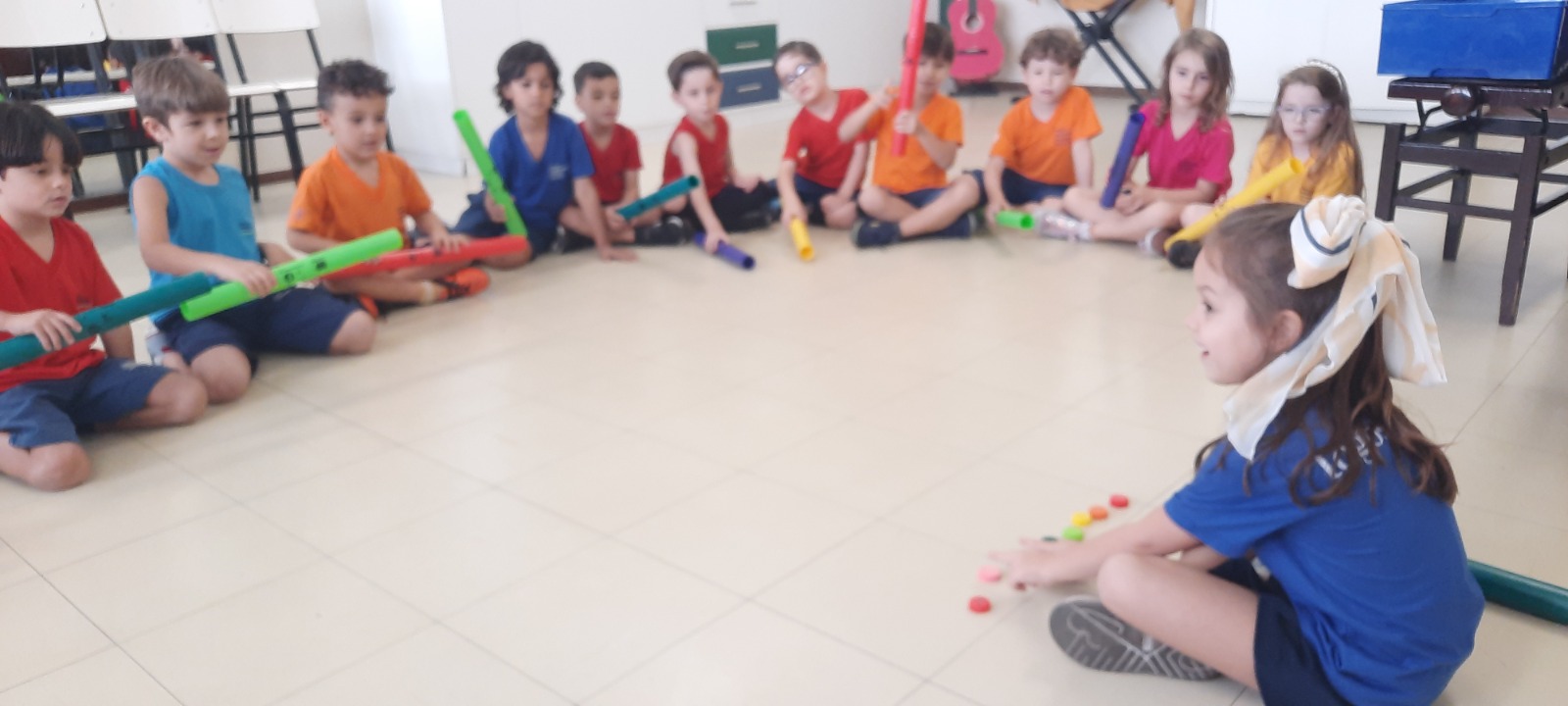 Sob a orientação da professora Karina Haddad, a atividade uniu música, criatividade, atenção e muita diversão!