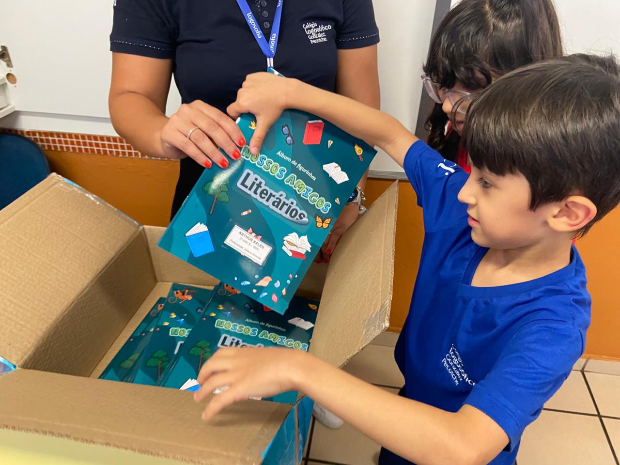 A proposta consiste em, a cada livro lido, acrescentar novos personagens ao álbum, incentivando não apenas o hábito da leitura, mas também a troca de experiências e o envolvimento coletivo da turma. A dinâmica despertou curiosidade e motivação, tornando o contato com os livros ainda mais significativo.