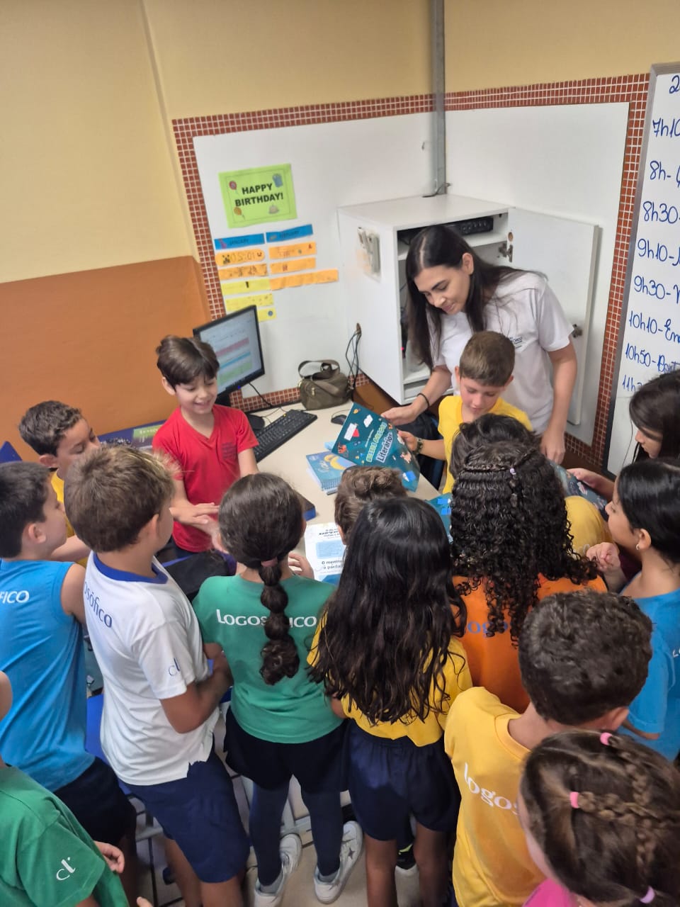 Com o primeiro livro já em mãos, os alunos iniciam essa trajetória literária com entusiasmo, prontos para explorar novas histórias, ampliar o repertório e desenvolver o gosto pela leitura de forma leve e participativa.