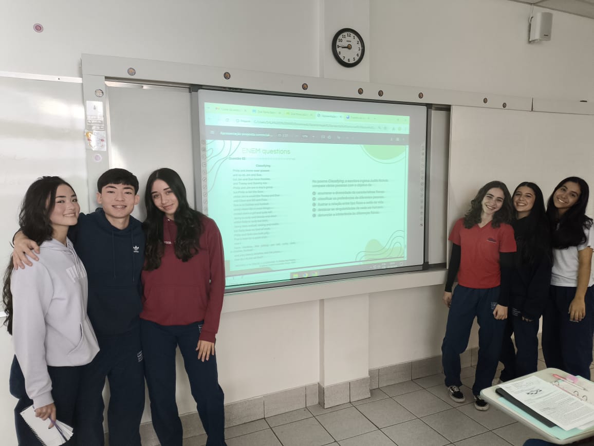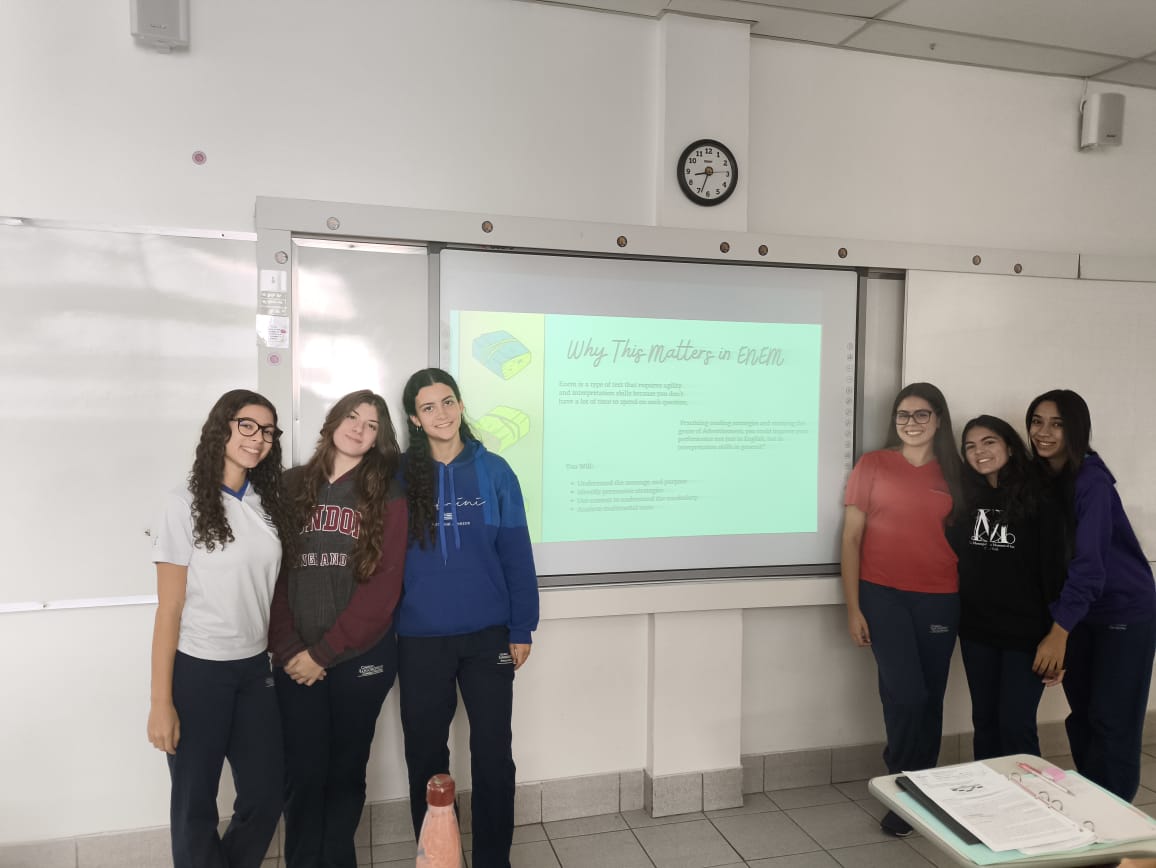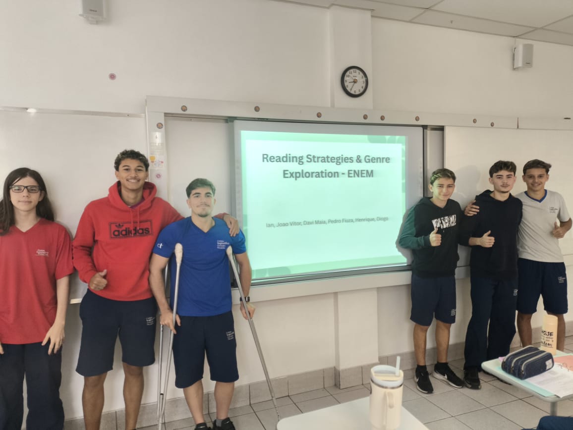Os alunos do 3º Ano do Ensino Médio participaram de uma atividade especial no Projeto de Inglês conduzido pela Teacher Camila Ribeiro, voltado ao desenvolvimento de habilidades de leitura fundamentais para o ENEM.