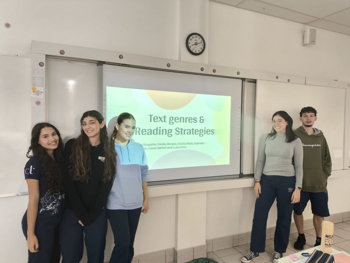 O projeto teve como objetivo aprimorar a compreensão leitora em inglês, explorando estratégias amplamente utilizadas em exames e avaliações oficiais. Entre elas, os estudantes praticaram o Skimming & Scanning, identificando informações gerais e específicas; Inference, realizando leituras implícitas e interpretando significados nas entrelinhas; e Context Clues, técnica que permite deduzir palavras e ideias a partir do contexto.