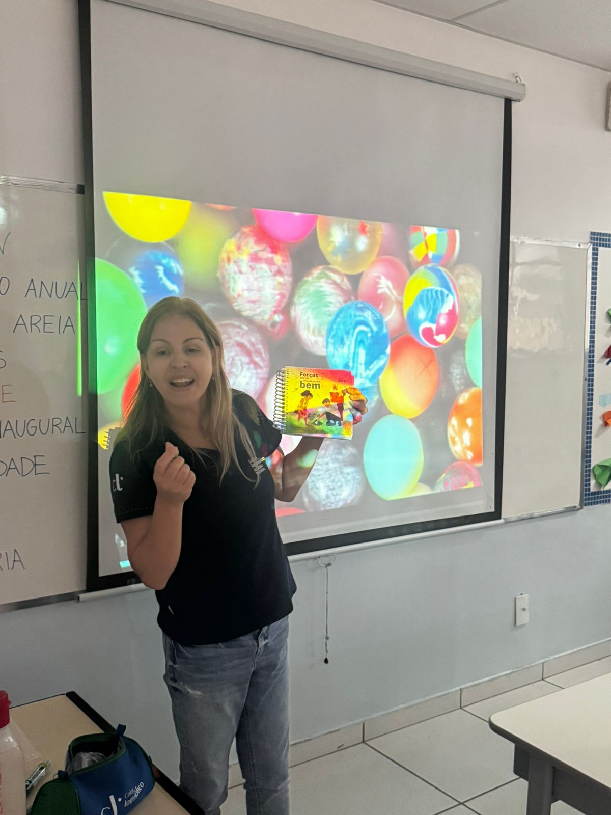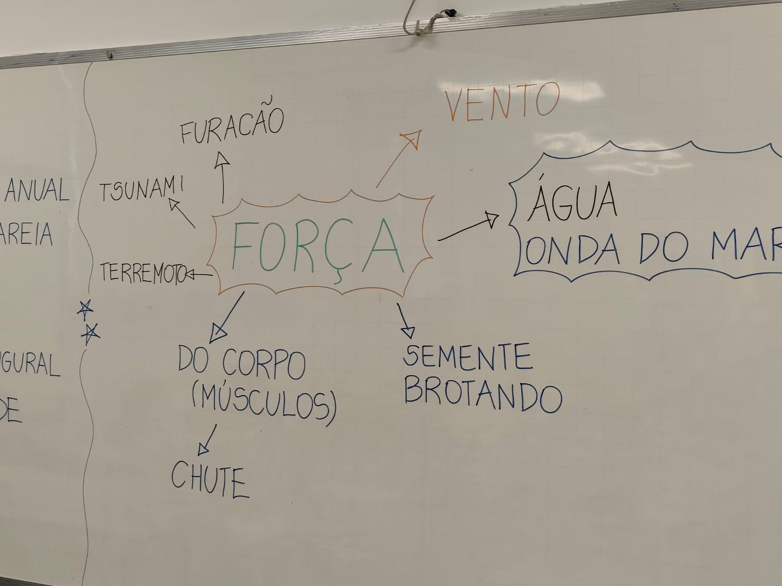 As professoras Alessandra Salles e Renata Lima conversaram com as crianças do 1º Ano sobre o tema do ano: “Forças que nos movem para o bem”. Para iniciar a reflexão, a turma pensou sobre o que é força e compartilhou diferentes ideias, que foram organizadas em um mapa mental construído coletivamente.