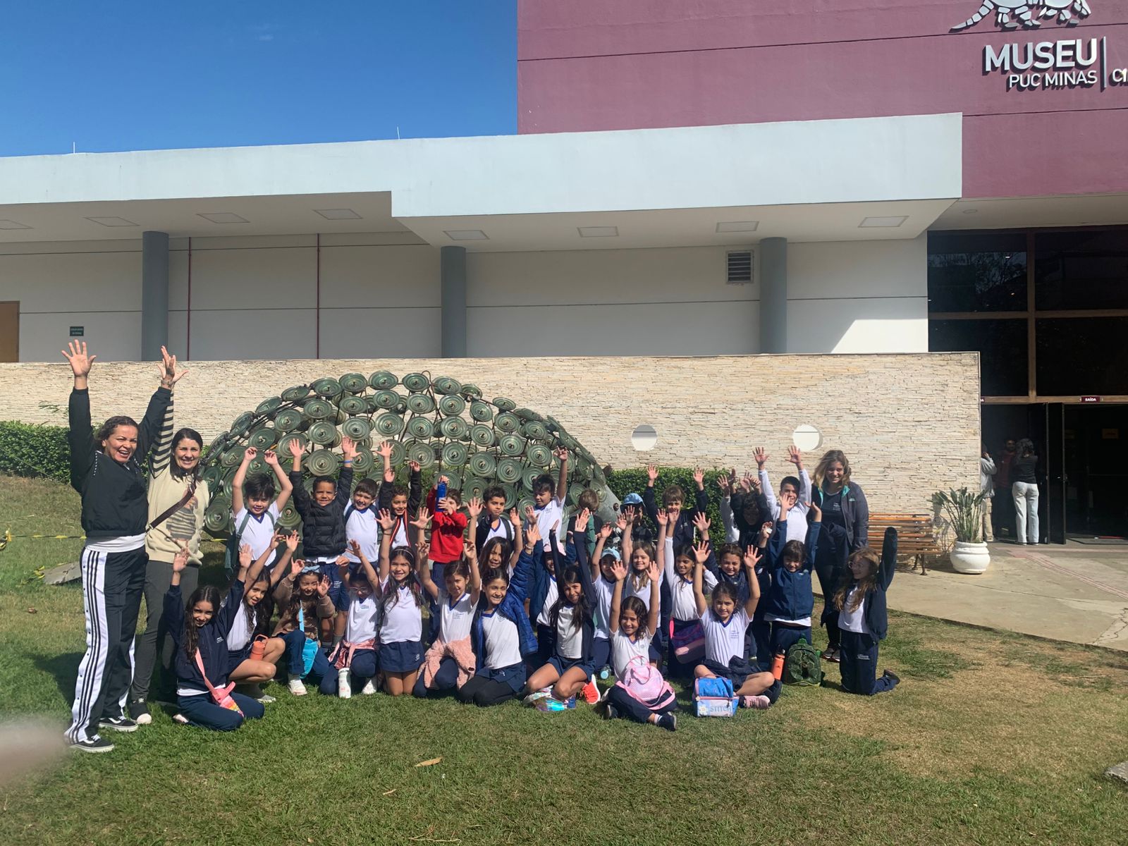 Os alunos do 2º Ano do Ensino Fundamental visitaram o Museu de Ciências Naturais da PUC Minas, onde observaram fósseis, animais empalhados e réplicas de dinossauros, além de conhecerem um pouco mais sobre a formação da Terra e sobre a vida dos primeiros seres humanos.